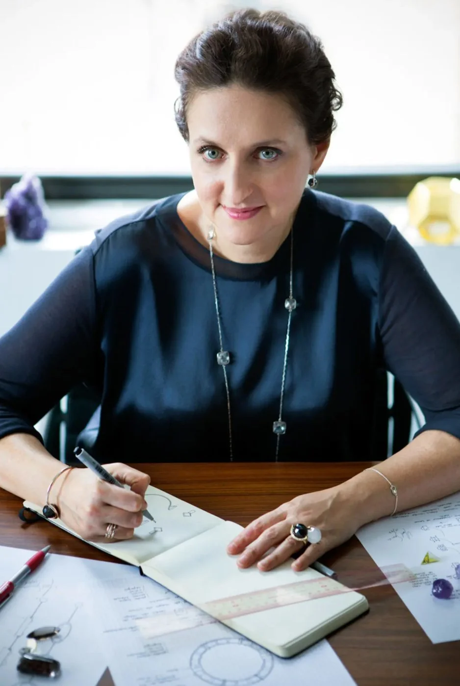 Since then, her designs have won multiple awards, including the 2002 Tahitian Pearl Trophy Award for her Spinning Wheel necklace. Her work has been shown in boutiques and galleries in the U.S. and internationally, and worn by Olivia Wilde, Morena Baccarin, and Scarlett Johansson, among others. She brought her business to New York ten years ago, and in 2013, she opened an elegant showroom there, in SoHo. Today, she continues to celebrate kinetic design and pieces that complement the strength and beauty of the women who wear them.
