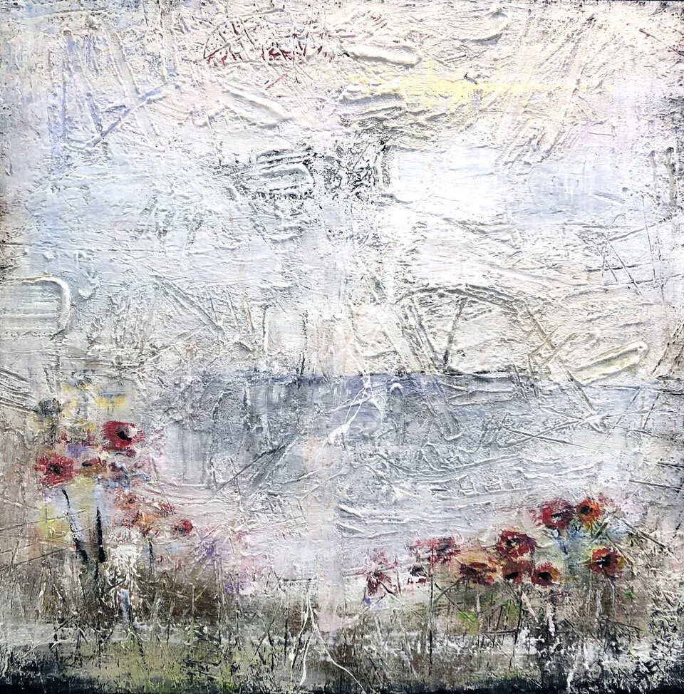 36” x 36” Red Roses painting (2018), acrylic paint on wood.