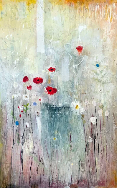 “Hey Poppy” painting made in 2021, acrylic paint on canvas 40” x 30”. Original art by Susan Woldman Elfer.